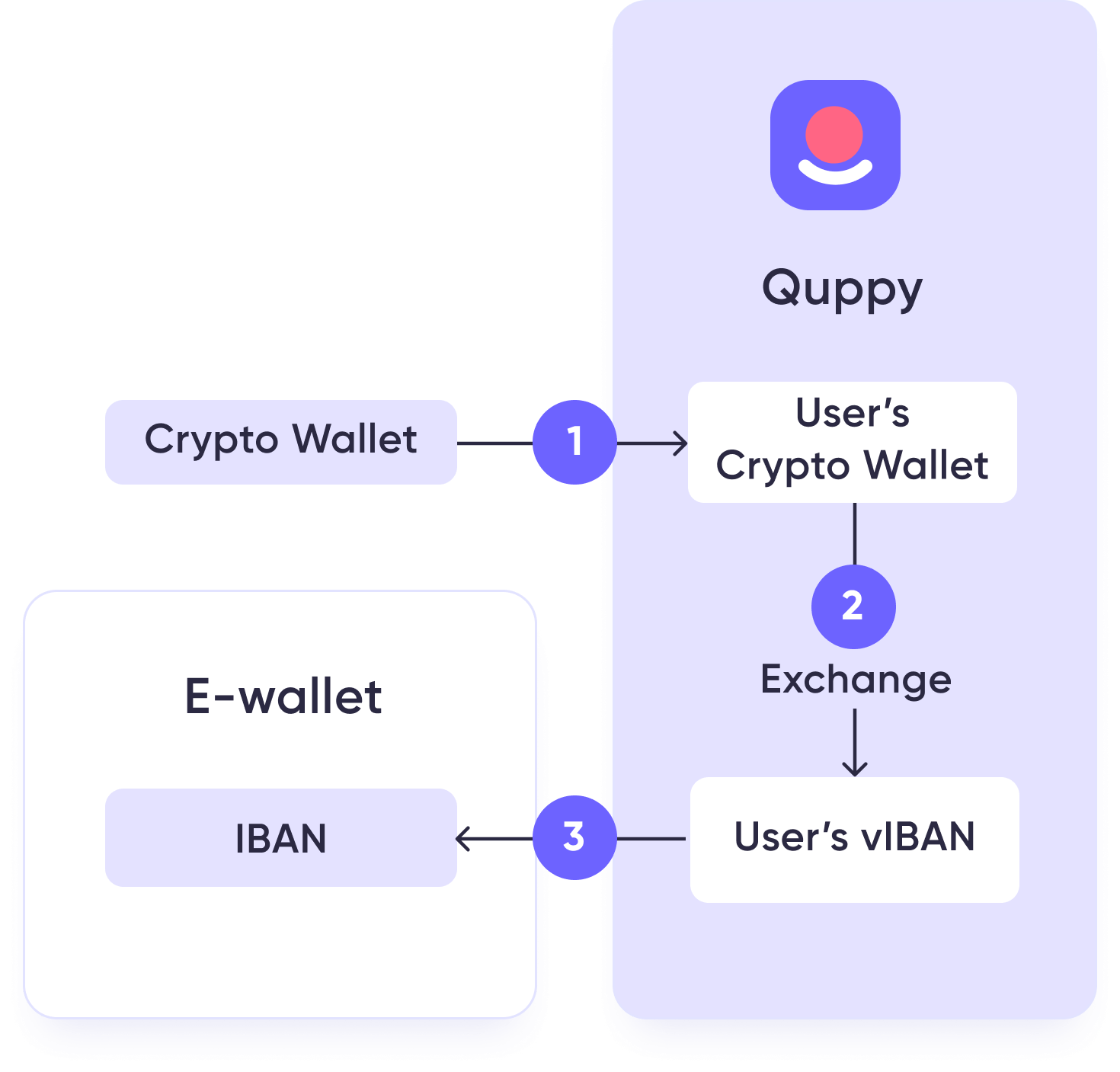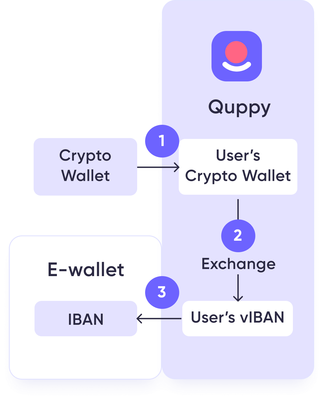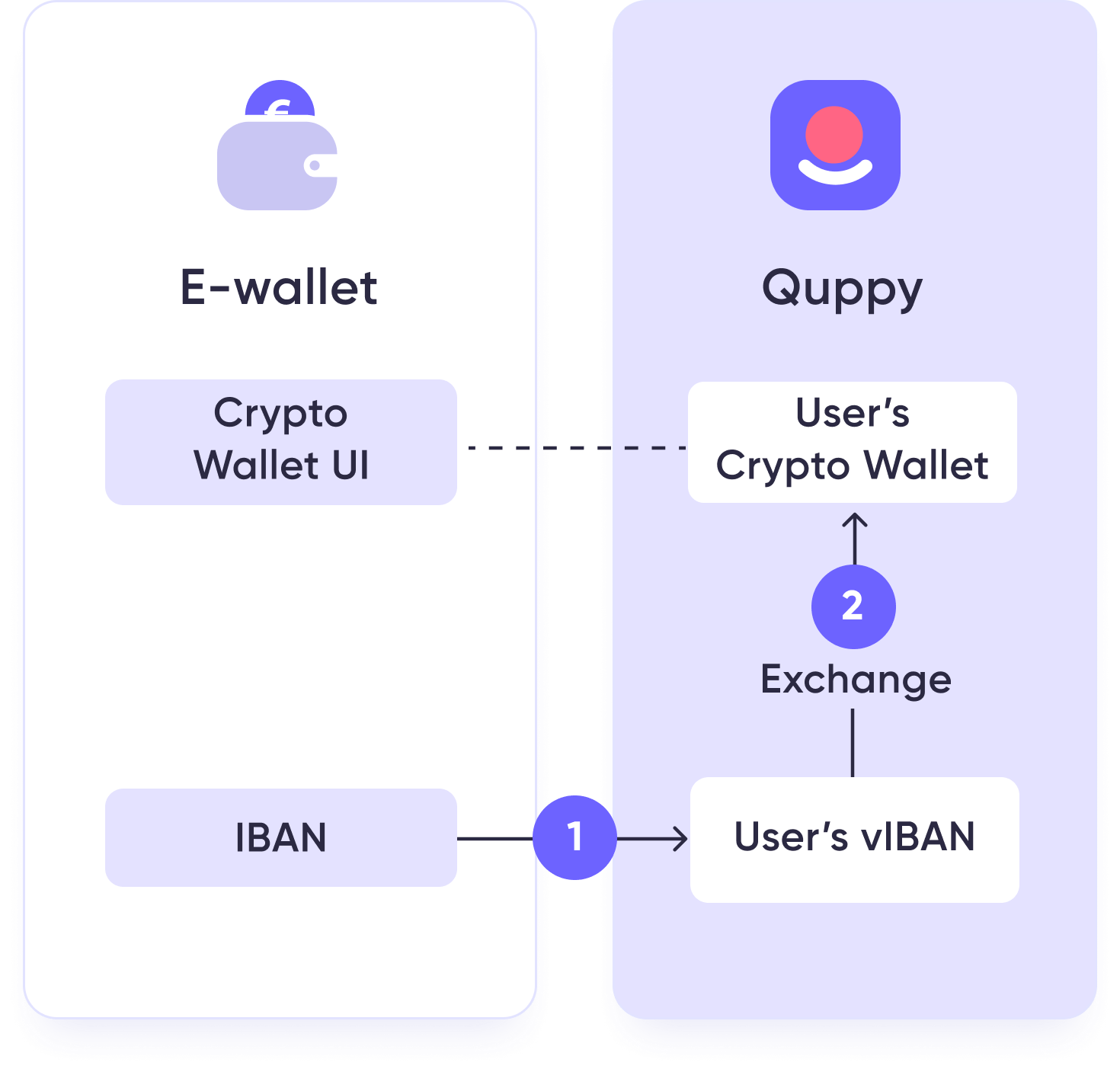 Integrujesz nasze API ze swoją aplikacją, dodajesz odpowiedni interfejs. Quppy umożliwia generowanie powierniczych portfeli kryptowalut oraz vIBAN dla każdego z Twoich klientów wraz z wymianą obsługiwanych walut. Bezpiecznie i szybko.